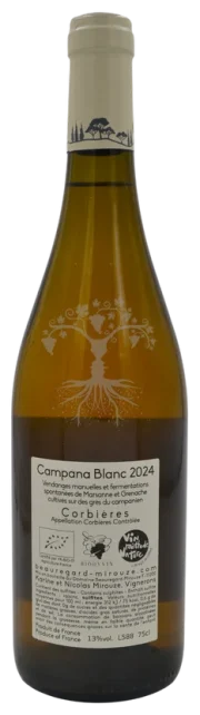 Campana blanc, un vin des Corbières produit au Château Beauregard Mirouze.