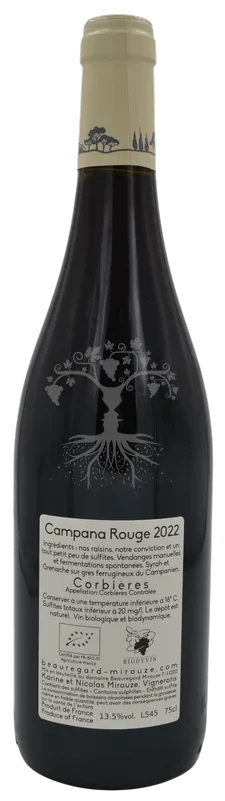 Campana rouge séduit par ses arômes de fruits avec des notes de garrigue. La bouche est charnue, ronde et souple avec une belle fraîcheur et de légères notes de grillé.