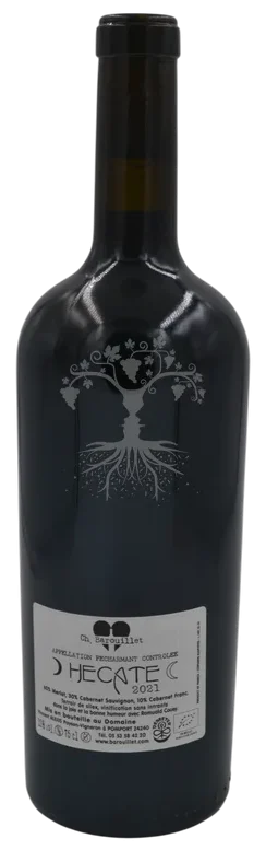 Cette cuvée Hécate est issue d’un assemblage de Merlot (60%), de Cabernet Sauvignon (30%) et de Cabernet Franc (10%) dont les vignes sont implantées sur un terroir d’argiles blanches profondes et de silex. Vincent Alexis pratique une macération en douceur, en laissant les raisins infuser pendant 3 à 4 semaines. S’en suit une élevage en barriques de 600 litres de 2 à 3 vins pendant 1 an, dont l’intérêt repose dans la micro-oxygénation douce et naturelle du vin. Vinification et élevage se déroulent sans aucun apport de soufre et la mise en bouteille est faite sans collage ni filtration.