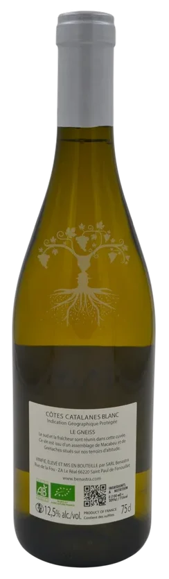Cette cuvée “Le Gneiss” est un assemblage de vignes de Macabeu, Grenache blanc, Chardonnay, Vermentino plantées sur des terroirs de calcaire, de gneiss et de granite situés à différentes altitudes.