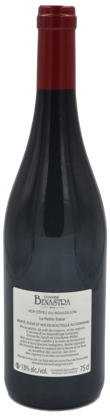 “La Petite Sœur” du domaine Benastra, un vin rouge produit dans les Côtes Catalanes.