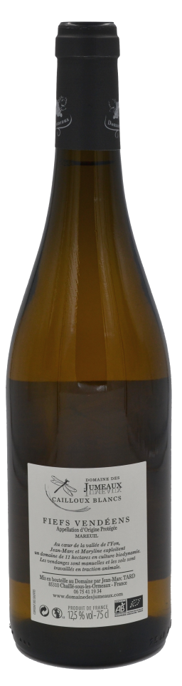 “Cailloux Blancs” est un beau vin blanc sec et aromatique sur un assemblage particulièrement réussi de Chardonnay et de Chenin à parts égales, élevé en cuve.