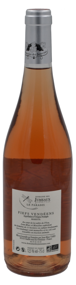 Un p’tit coin de Paradis contre un coin d’parapluie (en Vendée !), ce vin a quelque chose d’un ange… et vous n’perdrez pas au change pardi !! Cet air de Brassens nous trotte dans la tête avec ce paradis-là !! Lui qui disait que “le meilleur vin n’est pas nécessairement le plus cher mais celui qu’on partage”, il aurait pu faire allusion à ce magnifique rosé de repas que nous propose Jean-Marc Tard, bio et naturel : la dominante de pinot noir apporte de la structure, de la finesse et de la fraîcheur, le gamay un fruit gourmand.