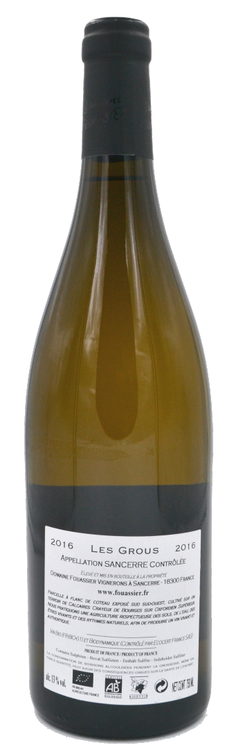 Cette cuvรฉe “Les Grous” a un nez sur la pomme bien mรปre, avec une touche citronnรฉe et des notes de pierre chaude. La bouche estย ronde, fraรฎche puis presque tannique, avec une belle aciditรฉ et des notes รฉpicรฉes. La finale est rafraรฎchissante, savoureuse, marquรฉe par le calcaire, avec des amers รฉvoquant l’รฉcorce de pomelo et une belle longueur.