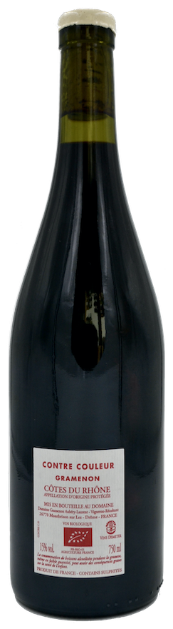 Contre Couleur nous a séduit par son nez expressif et sa bouche charmeuse et profonde. Le fruit est intense, solaire et séducteur, caractéristique de la Grenache.