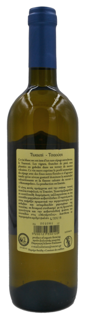 Ce vin blanc sec est issu d’un rare cépage autochtone, le Tasousi. Les vignes sont franches de pied (ce qui signifie non greffés) et plantées en gobelet sur un terroir de marnes calcaires.
