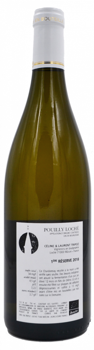 Ce Pouilly Loché se distingue par ses beaux arômes d’agrumes, d’amande et de fruits exotiques. La minéralité est bien présente ainsi qu’une tension qui laisse envisager un beau vieillissement. Le boisé se fait très discret – tant mieux !