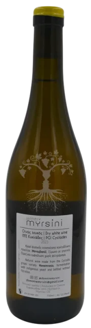 Cette cuvée est produite par Nicolas Bourget à partir de vignes de Monemvasia sur un terroir de sables granitiques du Nord-Ouest de Paros. Ce cépage originaire du Péloponnèse est très présent dans les îles Cyclades.