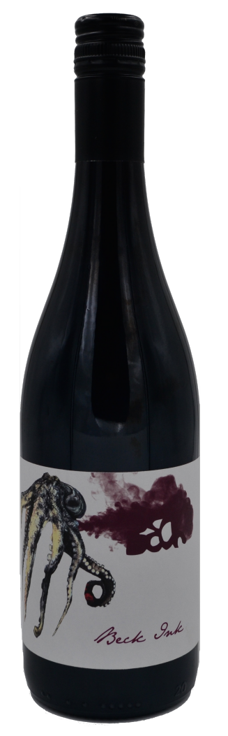 Second coup de coeur pour le choix du nom, Ink – l’encre en anglais – et de l’รฉtiquette avec ce magnifique poulpe qui rejette une encre rouge violacรฉe dessinant le logo du domaine. Superbe !!