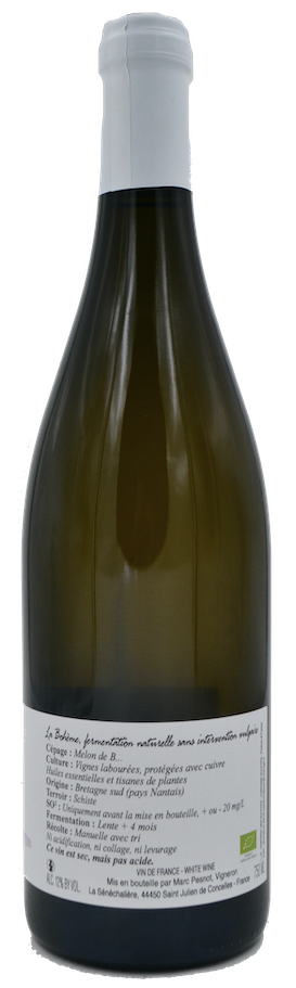 Les vignes de Melon de B….. (du fait du classement en Vin de France, il ne doit pas être fait mention du cépage sur l’étiquette !) dont est issue la cuvée Bohème poussent sur un terroir de schiste. Cette année, notre vigneron a testé l’inertage des goulots par du gaz inerte afin de limiter l’oxygénation du vin à ce moment délicat, et de ne pas combiner le soufre ajouté (en quantité infime) à la mise.