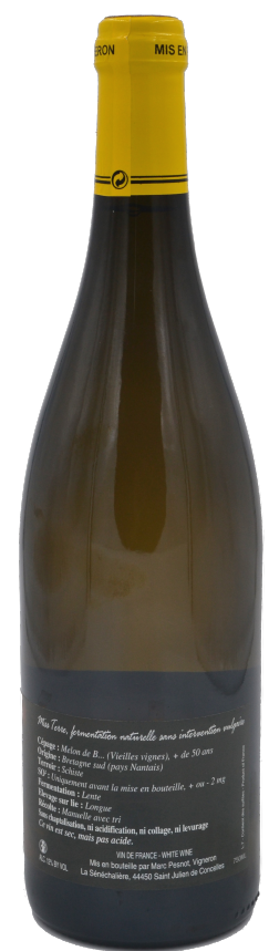 De vieilles vignes de Melon de Bourgogne sur un terroir d’amphibolites (la cuvée existe également dans une déclinaison sur un terroir de leptynites), sur la commune de Saint-Julien-de-Concelles, des raisins vendangés à haute maturité et un vigneron virtuose, Marc Pesnot, donnent naissance à cette cuvée “Miss Terre” si rare et recherchée.