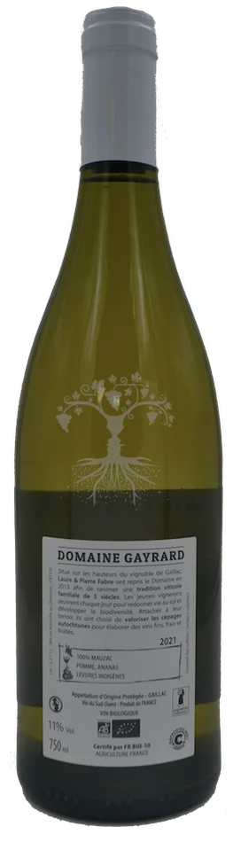 Ce Mauzac est issu d’une parcelle au sol argilo-calcaire cultivรฉe en agriculture biologique. Aprรจs des vendanges manuelles et un pressurage direct, la fermentation se fait grรขce aux levures indigรจnes et l’รฉlevage se dรฉroule en cuve ciment.