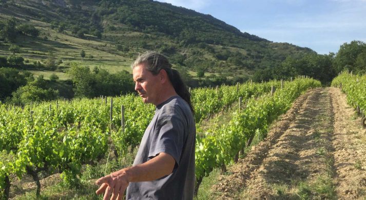 Implantées sur une mosaïque de terroirs argilo-calcaires et basaltiques, les vignes étaient déjà en bio avec de petits rendements, et donc préservées des désherbants et de la chimie moderne depuis au moins quinze ans. Une chance quand on sait le temps nécessaire à la « désintoxication » des sols et des vignes quand ils ont été travaillés en agriculture intensive… Sylvain stimule la vie microbienne des sols avec des composts jeunes ou des engrais verts et ne laboure qu’un rang sur 2 (l’autre reste enherbé). Il traite les vignes avec des décoctions de prêle et des tisanes pour stimuler les défenses naturelles de la plante, ce qui permet de diminuer les doses de cuivre.