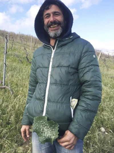 Il cultive 3 principaux cépages pour la production de ses vins blancs et oranges de Sicile : le Cataratto, le Grillo et le Grecanico.
