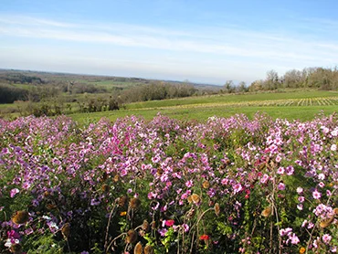 Les sols ne sont pas laissรฉs “nus” : des couverts vรฉgรฉtaux ou engrais verts sont semรฉs pour amรฉliorer, plus naturellement que ne le feraient des outils mรฉcaniques, les propriรฉtรฉs du sol : les crucifรจres (radis, chouxโฆ) dรฉcompactent les sols, les lรฉgumineuses (trรจfle, fรฉverole, poisโฆ) enrichissent le sol en azote , les fleurs mellifรจres (phacรฉlie, cosmosโฆ) favorisent la faune auxiliaire. Ces vรฉgรฉtaux sont roulรฉs (et non fauchรฉs) ร lโaide dโun rouleau รฉcraseur.ย Le travail sous le rang est rรฉalisรฉ mรฉcaniquement avec des lames interceps, et le pied des vignes est travaillรฉ avec lโoutil par excellence du vigneron : la pioche !